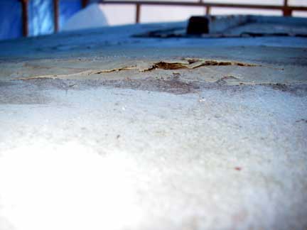 In the background you can see an area where a previous patch to the deck has lifted and cracked.