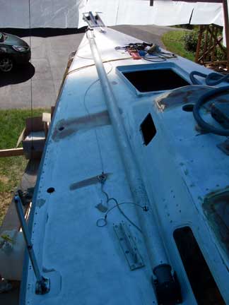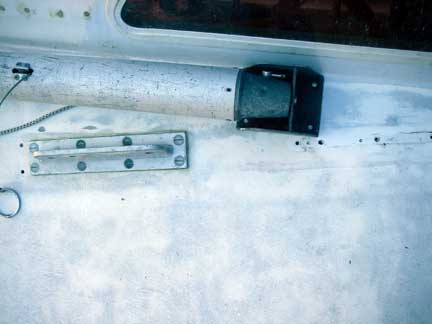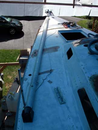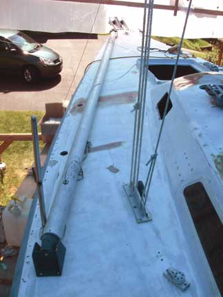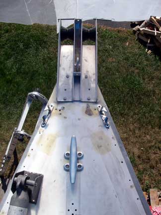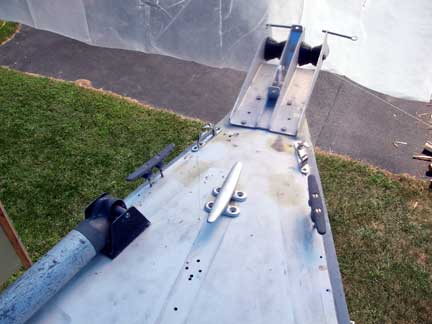 But now I'm adding an anchor roller assembly and a bigger cleat, so stuffing the end of the pole right up behind the headstay doesn't work any more.