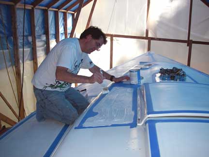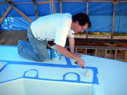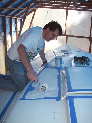 "Trowelling" the KiwiGrip non-skid paint on with a brush