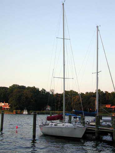 We purchased GREYHAWK in July of 2005 in Oxford, Maryland. The boat had been seriously raced, and raced hard, for most of her life. The boat was in need of some real TLC, but while there were certainly issues with her condition, her basic underlying structure was sound and she came with a lot of high-quality (albeit aged and well-used) hardware and a decent suit of sails. The previous owner may not have maintained or upgraded some systems, but he did take good care of those things that made her a fast sailing machine -- her bottom, sails, and rigging.